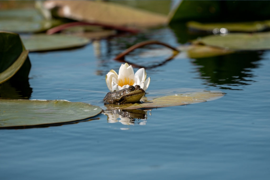 To travel through it is to feel genuinely far from the modern world. A labyrinth of canals, lakes, and floating reed islands stretches in every direction. Pelicans drift overhead in silent formations. Water lilies carpet the surface of still black water. The air smells clean in a way city air simply doesn’t.